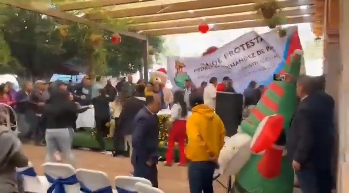 Pedro Luis Hernández, alcalde electo de Santo Tomás de los Plátanos, Estado de México, junto a su esposa, salieron corriendo para escapar de las autoridades, durante su toma de protesta; según los reportes, tenía una orden de aprehensión derivada de las investigaciones del Operativo Enjambre.
