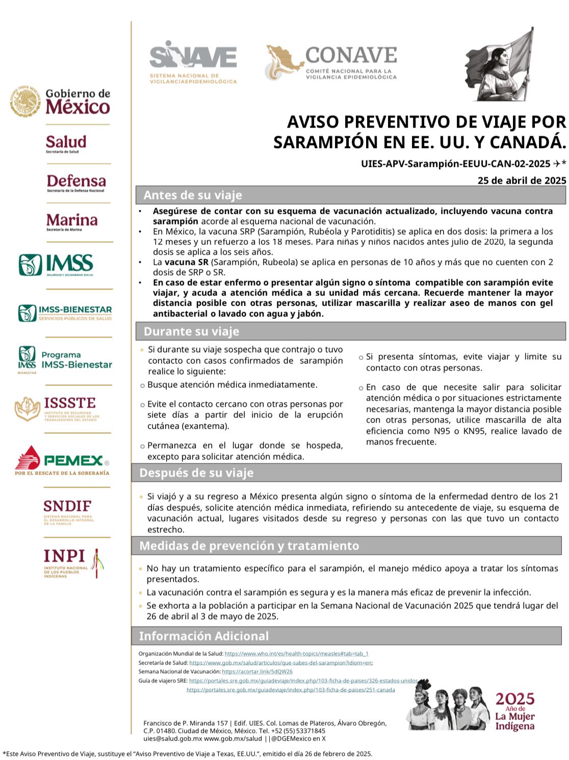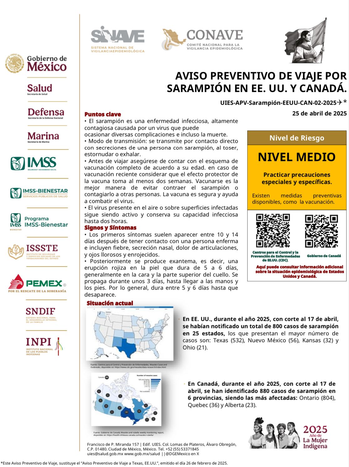 La Secretaría de Salud emitió un aviso a viajeros por presencia de sarampión en Estados Unidos y Canadá, ya que en lo que va del año en el primer país suman 800 casos, mientras que en el segundo, 880.