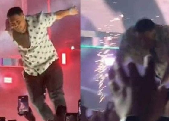 El cantante Eduin Caz, vocalista de Grupo Firme, intentó ser un ‘rockstar’ y se aventó al público en un concierto…