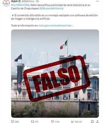 INAH descalifica publicidad de serie televisiva en el Castillo de Chapultepec.