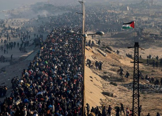 Centenares de palestinos comenzaron a desplazarse hacia el norte de Gaza este lunes, siguiendo la carretera de Rashid, tras el…
