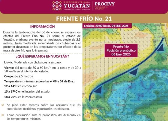 Se informa que durante la tarde-noche del 06 de enero, se esperan los efectos del Frente Frío No. 21 sobre…