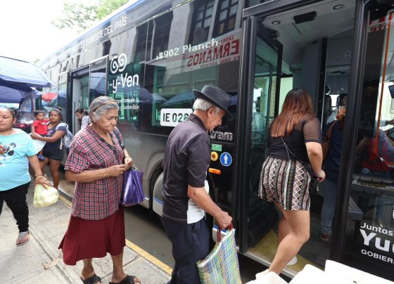 Yucatecos utilizan el primer transporte público 100% eléctrico del Sureste, el Ie-tram, en su ruta 902 La Plancha-Kanasín para llegar…