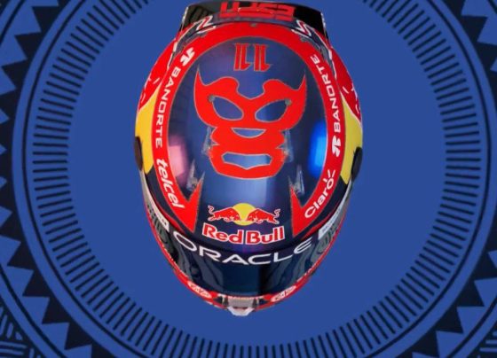 Sergio ‘Checo’ Pérez presenta su casco para el GP de México, el cual está inspirado en la lucha libre.