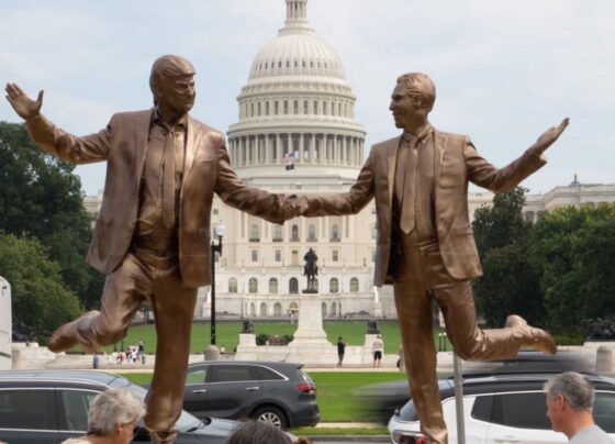Aparece polémica estatua de Trump y Epstein tomados de la mano en Washington D.C.