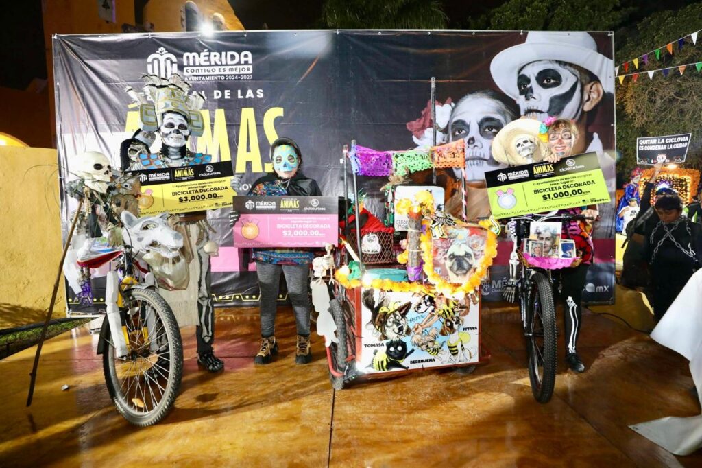 Se entregaron premios de 3,000, 2,000 y 1,000 pesos para las tres bicicletas mejor adornadas, inspiradas en la temática del Día de Muertos.