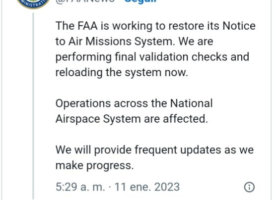 La Administración Federal de Aviación de EE.UU. detalló que hay vuelos afectados por el fallo en todo el Sistema Nacional…