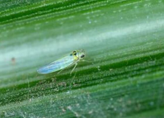 La plaga Osbornellus salsus, un insecto del grupo de los cicadélidos o “saltadores de hoja” que se alimenta succionando la…