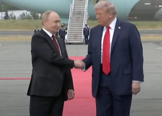 Donald Trump y Vladimir Putin se reunieron este viernes 15 de agosto de 2025 en la base militar Elmendorf-Richardson, en…