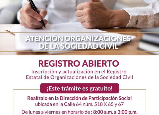 El Gobierno de Yucatán, a través de la Secretaría de Bienestar, invita a las asociaciones civiles a registrarse o actualizar…