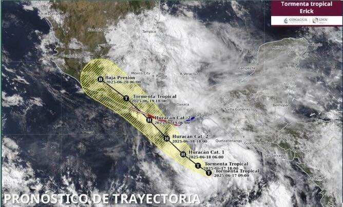 El huracán Erick será el primer ciclón de la temporada en impactar México. La Conagua alertó sobre su rápida intensificación, ya que podría alcanzar hasta categoría 5, según los pronósticos presentados el 17 de junio. Erick, que inició como depresión tropical 5E, mantiene en alerta a las autoridades por su fuerza y trayectoria.