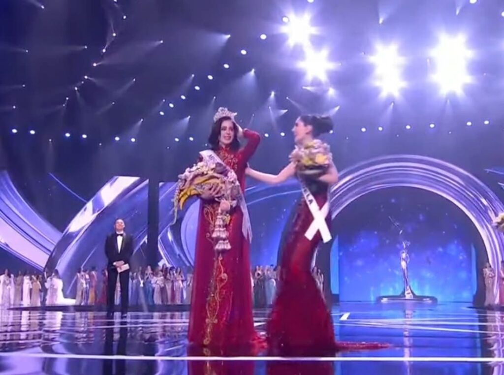 La reina saliente, Victoria Kjær Theilvig de Dinamarca, coronó a la ganadora Fátima Bosch Fernández, representante de México, quien logró la cuarta corona para su país