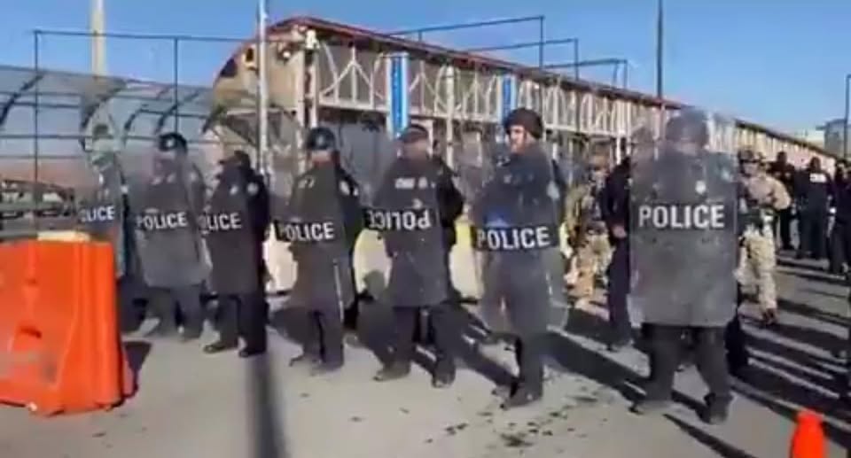 Las autoridades advierten: “Cruzar este punto resultará en arresto, procesamiento y posible aplicación de la fuerza”.
