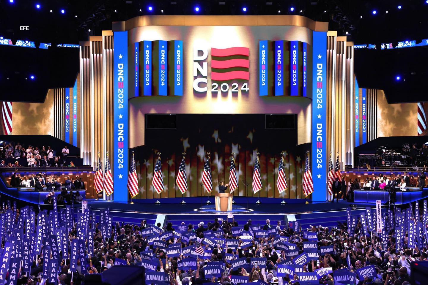 Con su característica sonrisa, así fue la participación de Kamala Harris en la Convención Nacional Demócrata de 2024, en donde inició su discurso aceptando formalmente la candidatura presidencial y prometió ser una presidenta para todos.