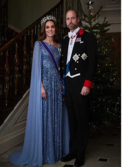 Este evento tuvo lugar durante un banquete de estado ofrecido por los reyes Carlos III y Camila en honor al presidente alemán Frank-Walter Steinmeier y su esposa, con la presencia destacada de los príncipes de Gales, quienes acompañaron a la pareja presidencial durante la visita. El conjunto de Kate fue completado con pendientes que pertenecían a la difunta reina Isabel II y otras insignias de la familia real.