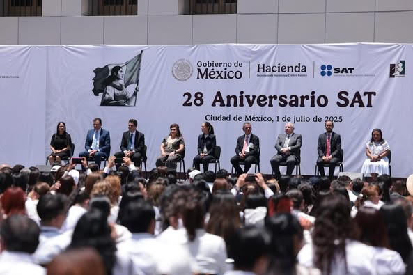 La presidenta de México, Claudia Sheinbaum, estuvo presente en el 28 aniversario del SAT México, institución fundamental para el Estado mexicano.