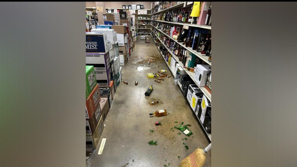 • Provocó daños físicos en el establecimiento, incluyendo botellas rotas y placas del cielorraso caídas.