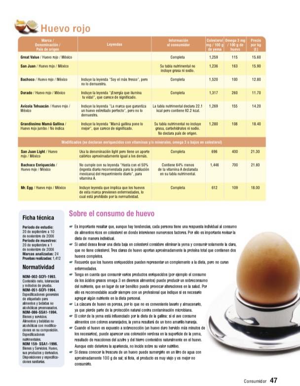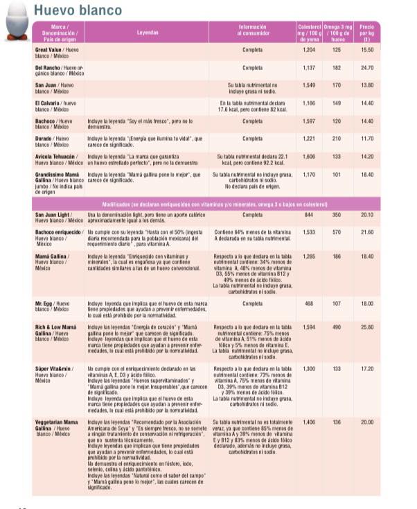 Para el estudio, la Profeco analizó el contenido de proteína, colesterol y grasa; peso y tamaño; frescura, no se consideraba fresco si la clara tenía una apariencia acuosa; calidad sanitaria; y costo de 24 marcas de huevo: siete de huevo rojo y 17 de blanco.