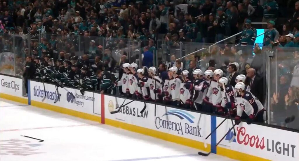 Ryan Reaves de los San Jose Sharks y Mathieu Olivier de los Columbus Blue Jackets protagonizaron un brutal enfrentamiento el 6 de enero de 2026 durante el segundo período (19:16) de su partido de la NHL.