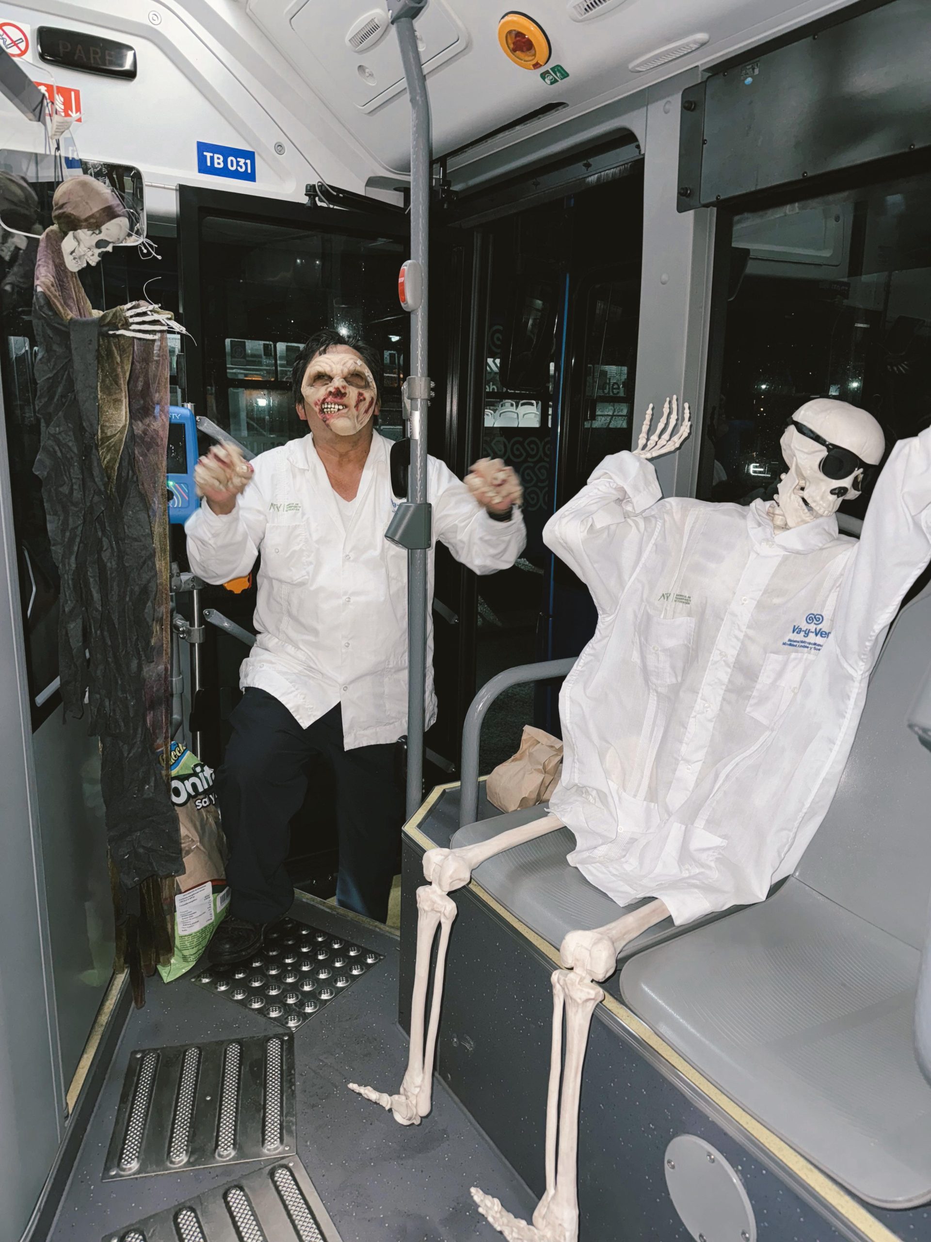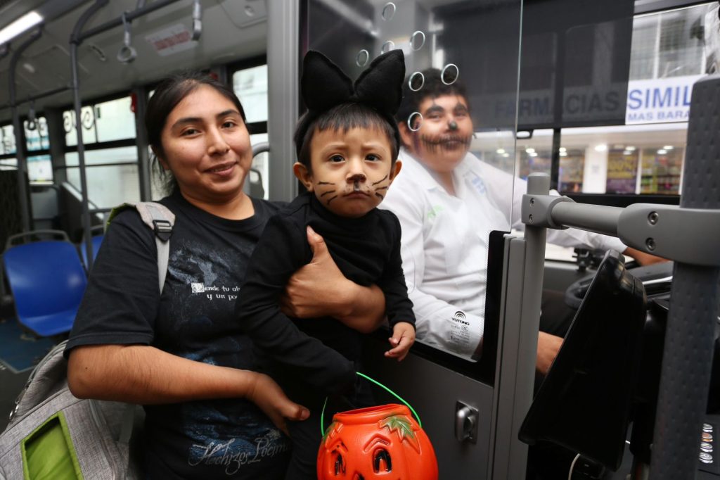 Con la intención de llevar alegría y sorprender a las y los usuarios del Sistema de Transporte Va y Ven, las y los operadores se caracterizaron de diferentes personajes de terror y obsequiaron dulces a la y los pequeños para celebrar las fechas conmemorativas.