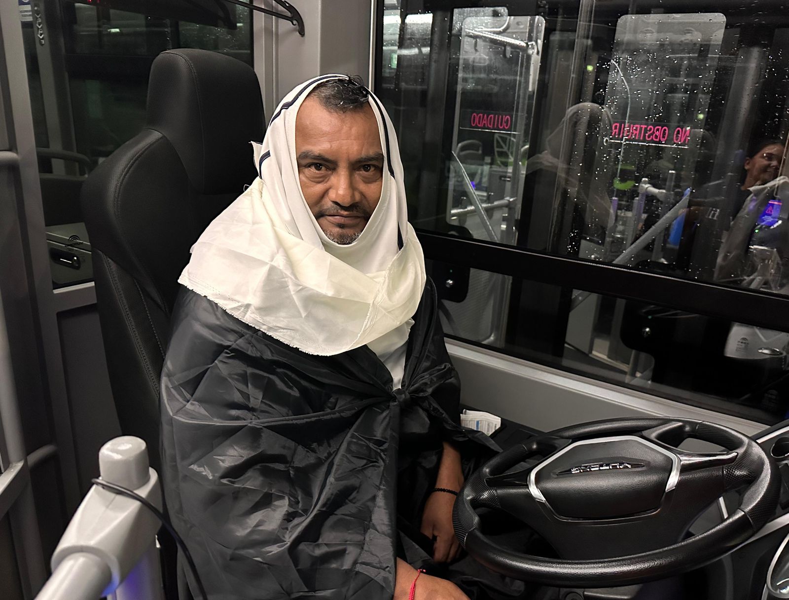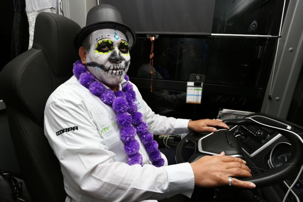 En el marco del Día de Muertos, Francisco Amaya, operador de la ruta 109 Diamante recibió a sus pasajeras y pasajeros con dulces y una sonrisa para alegrarles el día.