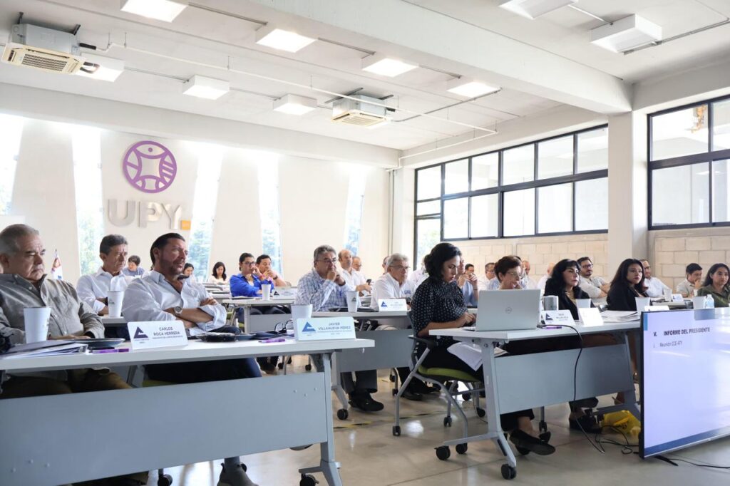 El presidente de Canaco, José Enrique Molina, junto con su consejo directivo, visitó la UPY para conocer los proyectos tecnológicos que impulsan la innovación y el uso de la “Inteligencia Artificial” en la solución de problemas reales y en la mejora de estrategias de negocio.