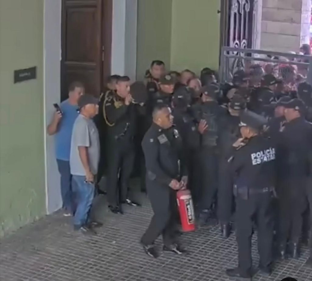 SSP Informa: Medidas implementadas durante manifestación en Palacio de Gobierno en Mérida Yucatán.