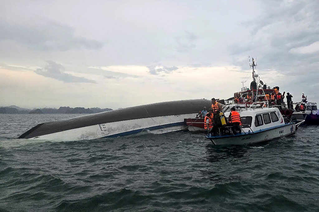 El accidente ocurrió alrededor de las 13:30 horas, cuando una tormenta repentina —con fuertes vientos, lluvias intensas, granizo y descargas eléctricas— sorprendió a la embarcación y la hizo volcar cerca de la cueva Dau Go, uno de los principales atractivos de la bahía. Las adversas condiciones meteorológicas han dificultado las labores de rescate.