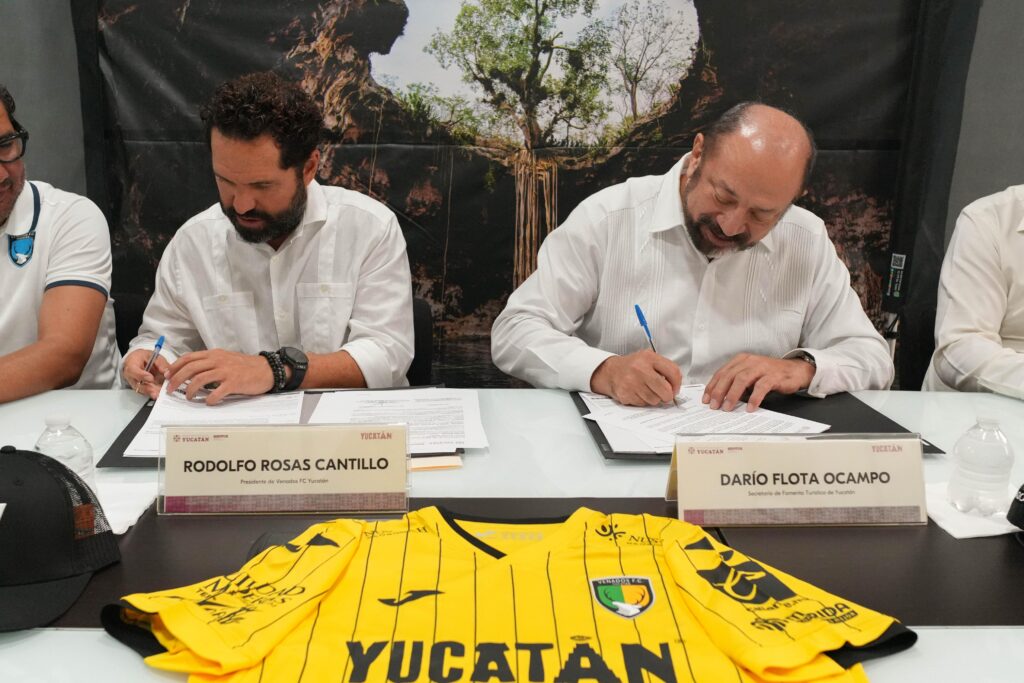 El convenio fue firmado por Darío Flota Ocampo, titular de Sefotur, y Rodolfo Rosas Cantillo, presidente de Venados FC, quienes destacaron el gran potencial de esta alianza para atraer más visitantes y posicionar a Yucatán como un destino único que combina pasión por el fútbol con experiencias auténticas.