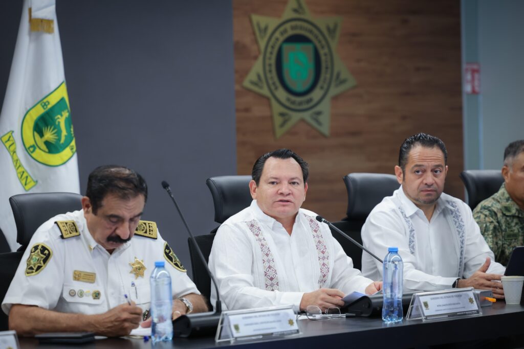 El Gobernador Joaquín Díaz Mena reiteró el firme compromiso de su administración para mantener la paz y la tranquilidad de las familias yucatecas. Durante la sesión de la Mesa Estatal para la Construcción de la Paz y Seguridad, anunció que Yucatán fue reconocido como el estado más seguro de México en la reciente sesión del Consejo Nacional de Seguridad Pública, donde participaron autoridades federales y estatales, incluyendo al secretario de Seguridad y Protección Ciudadana, Omar García Harfuch, y gobernadores de todo el país.